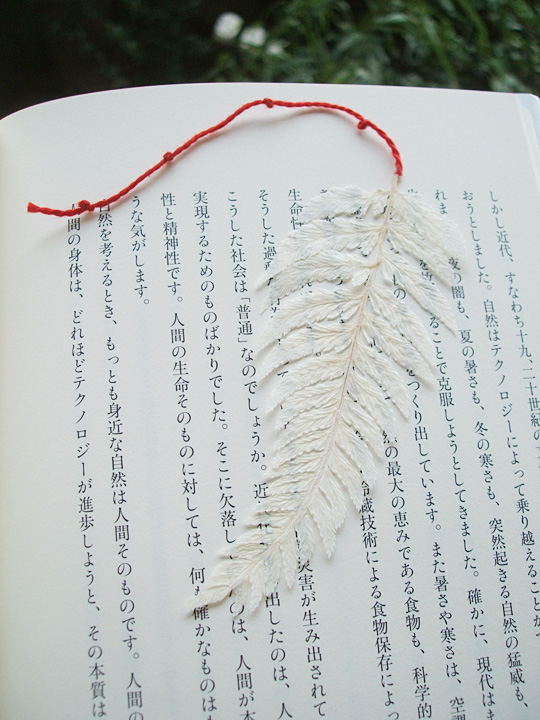 まだ続きが読みたい、けど閉じないと!この忙しい毎日の中で少しでも心地よく書物を閉じることができればとおもっていました。“しだのしおり”は、文字が透過するほど薄く、色は紙の白さに同化するほどです。感情にそっと触れて、詩的に機能します。